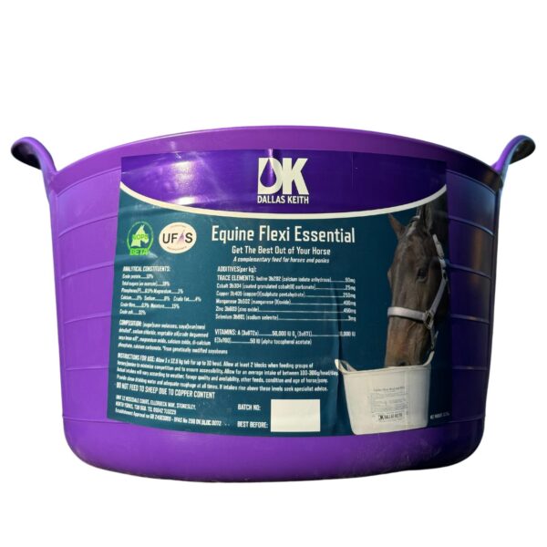 דלי ה- Equine Flexi Essential מועשר במגוון רחב של ויטמינים ומינרלים חיוניים וכמו כן של חלבון.